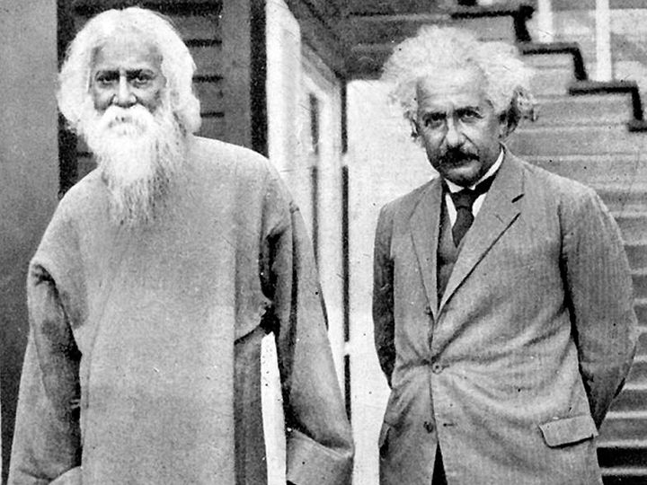 साहित्य और विज्ञान की दो महान हस्तियां रवींद्रनाथ टैगारे और अल्बर्ट आइंस्टाइन, फोटो 1930 का (स्रोत : यूनेस्को गैलरी)