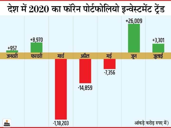 - इससे पहले मार्च, अप्रैल और मई में विदेशी निवेशकों ने भारत से 1.4 लाख करोड़ रुपए निकाल लिए थे