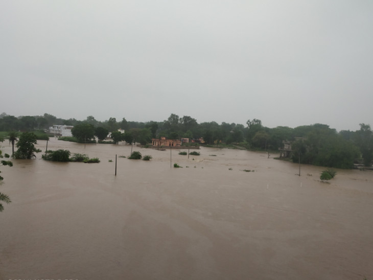 धरियावाद। प्रतापगढ़ जिले के धरियावाद में कर्ममाचिनी नदी की पुलिया पर पानी आ गया। फोटो : राहुल पालीवाल