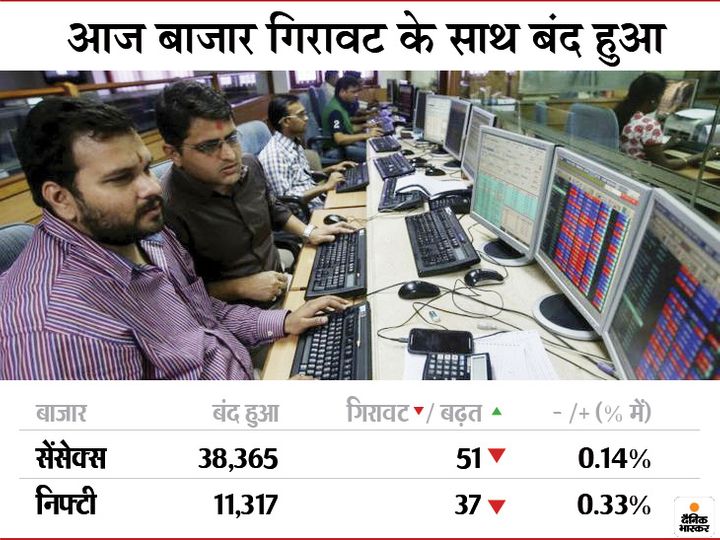 क्लोजिंग बेल : बीएसई सेंसेक्स 51.88 अंक नीचे 38,365.35 पर और निफ्टी 37.70 अंकों की गिरावट के साथ 11,317.35 पर बंद हुआ।