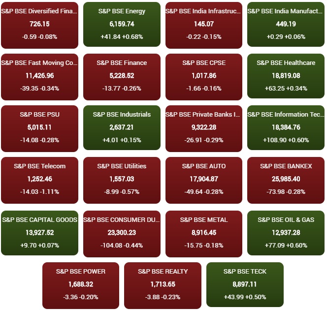 09:39 AM बीएसई में शामिल 23 सेक्टर्स में से 15 गिरावट और 8 में बढ़त है।