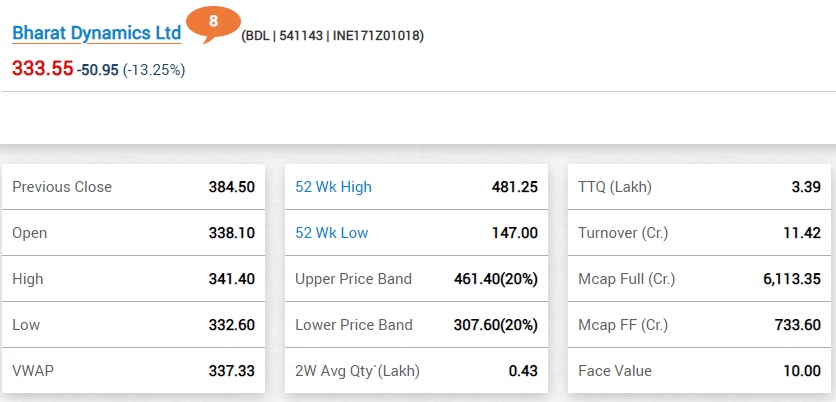 09:59 AM भारत डायनेमिक्स लिमिटेड के शेयर में 13 फीसदी की गिरावट है।