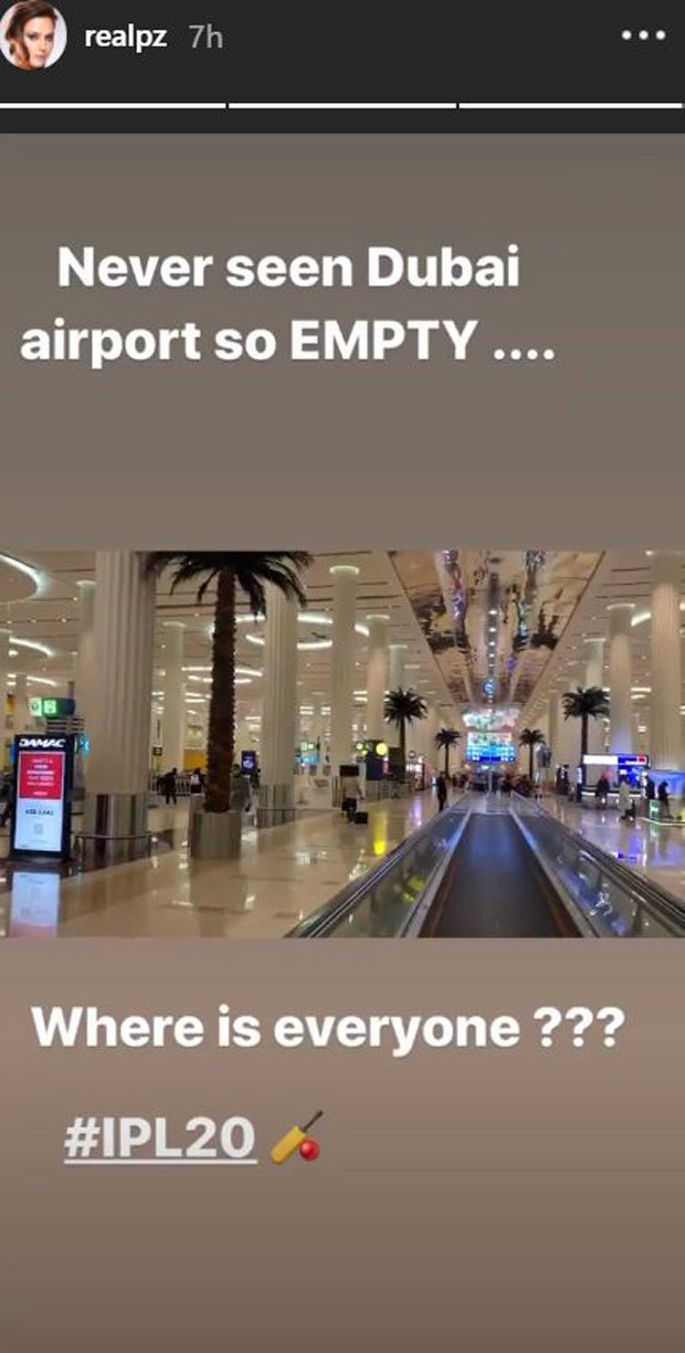 Preity Zinta also took to her Instagram stories to share a small video of an empty Dubai airport. She said that she had never seen the Dubai airport so empty and captioned the video, “Never seen the Dubai airport so empty.. Where is everyone? IPL 20”.