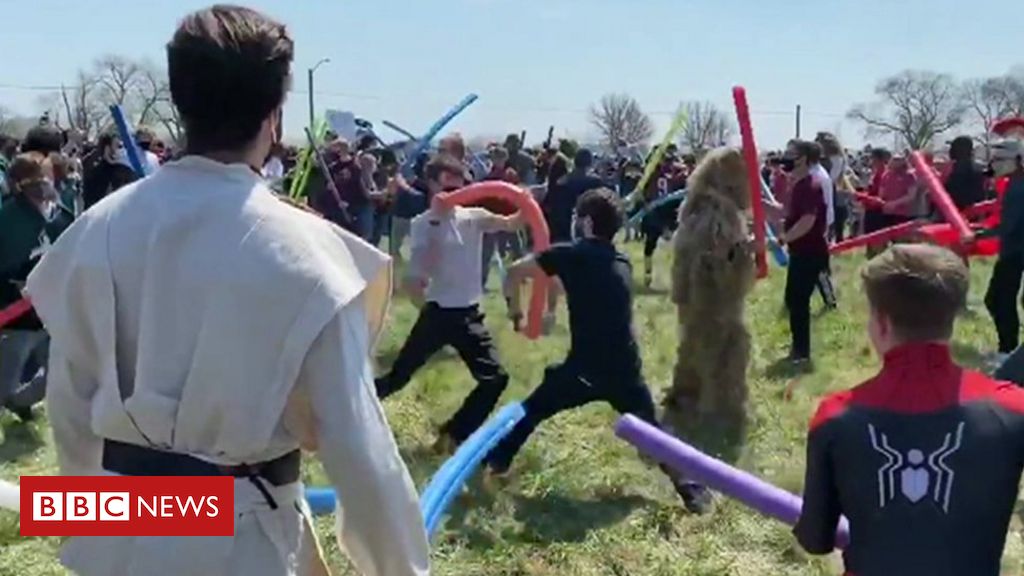Armed with pool noodles, the friendly fray was sparked by a viral post challenging Joshes in the US. Source link