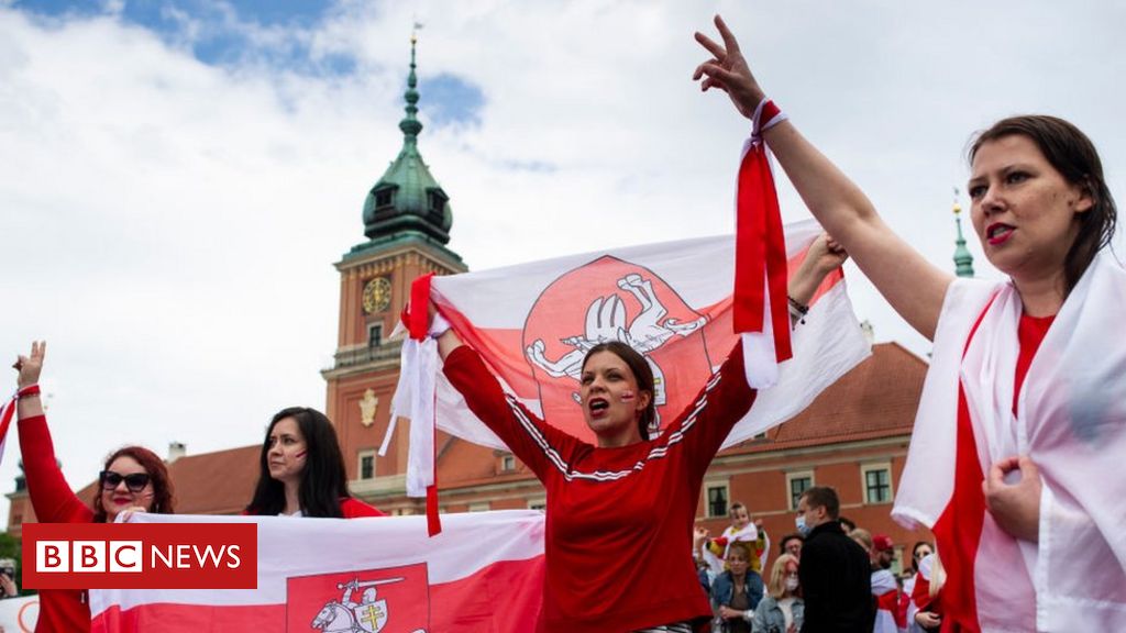 Crowds call for the release of an activist who was arrested when his flight was grounded in Minsk. Source link