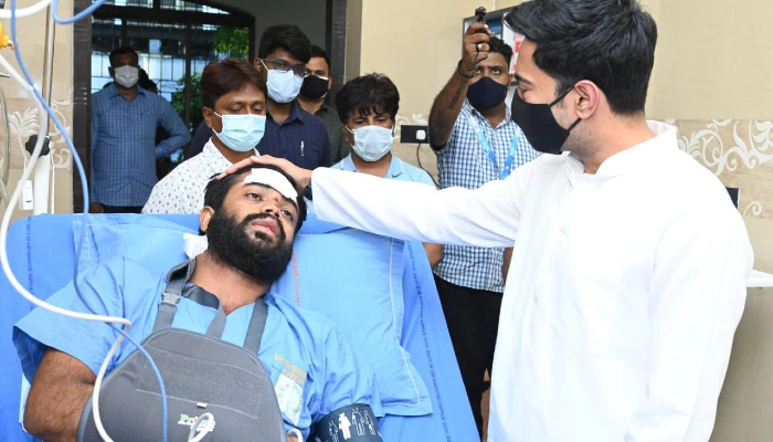 আহত কর্মীকে দেখতে এসএসকেএম হাসপাতালে Abhishek, বাড়ালেন মনোবল। Abhishek Banerjee went SSKM to meet TMC worker Suvankar debnath