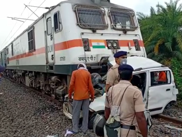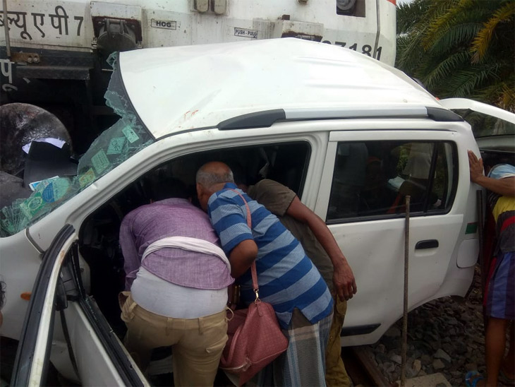 - रेलवे क्रॉसिंग पार करने की कोशिश में कार रेल ट्रैक पर फंस गई थी