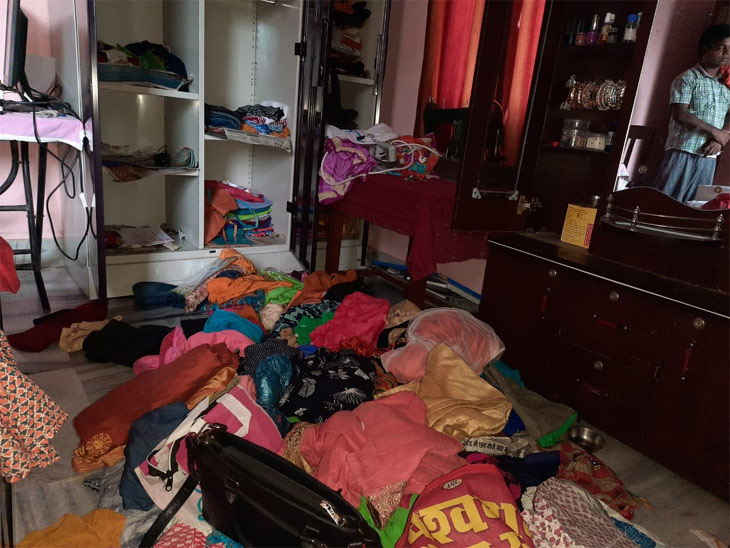 चोरी के बाद बिखरा पड़ा घर का सामान।
