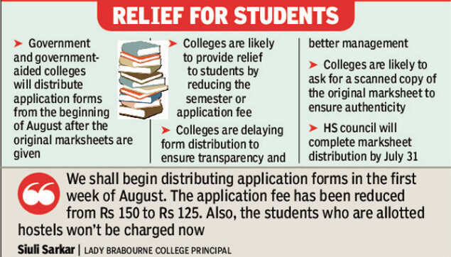 Lady Brabourne College principal Siuli Sarkar said that the college will begin distribution of application forms from the first week of August. “We have reduced the application fee from Rs 150 to Rs 125. Also, the students allotted hostels won’t be charged now,” Sarkar said.
